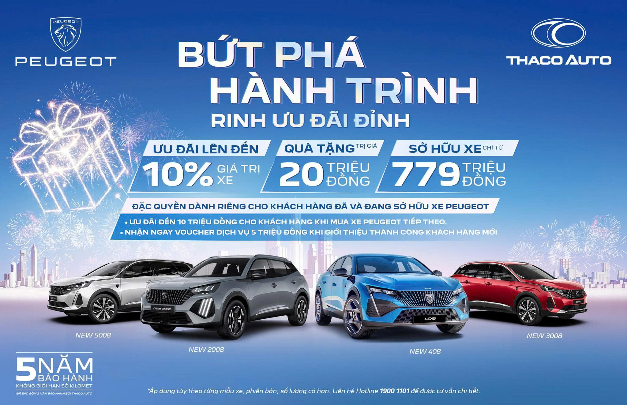 Với nhiều Chương trình khuyến mãi hấp dẫn, quà tặng đặc biệt và liên kết với mạng lưới ngân hàng lớn mạnh tại Việt Nam sẽ giúp cho người dùng yên tâm về Peogeot Hà Nội